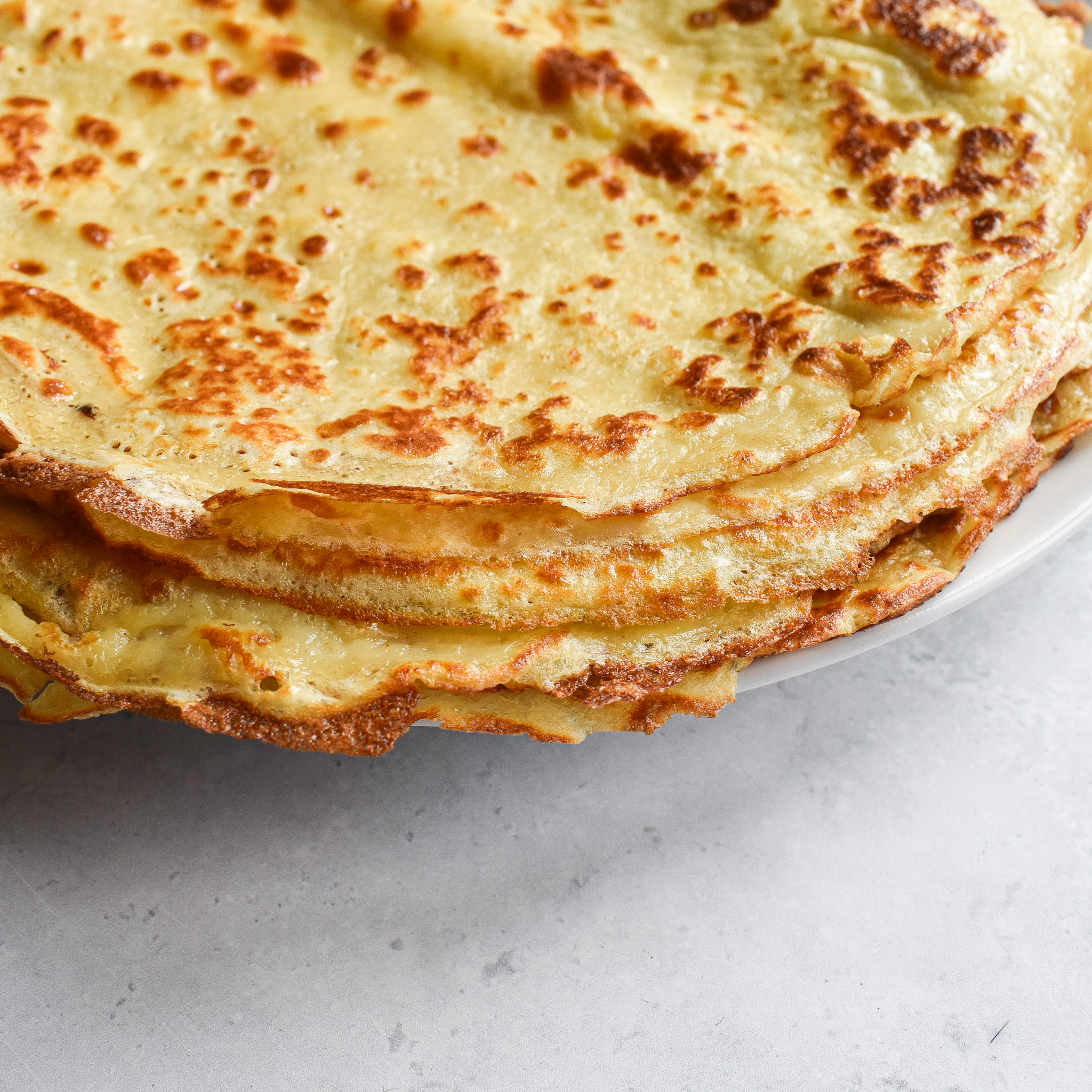 - Repeat the process to use up all the batter which should make around 10 crepes. As you make each crepe, you can stack them on the plate. Also keep an eye on the temperature. If the crepes are browning too quickly then slightly reduce the heat.Once all the crepes are cooked, serve with your favourite filling and enjoy.