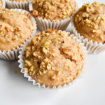- Divide the batter between the 8 muffin cases (about ¾ full) then sprinkle the chopped walnuts on top of each muffin. Bake for 20 - 22 minutes or until a skewer inserted in the centre comes out clean. Cool for 10 minutes in the tin then transfer to a wire rack.