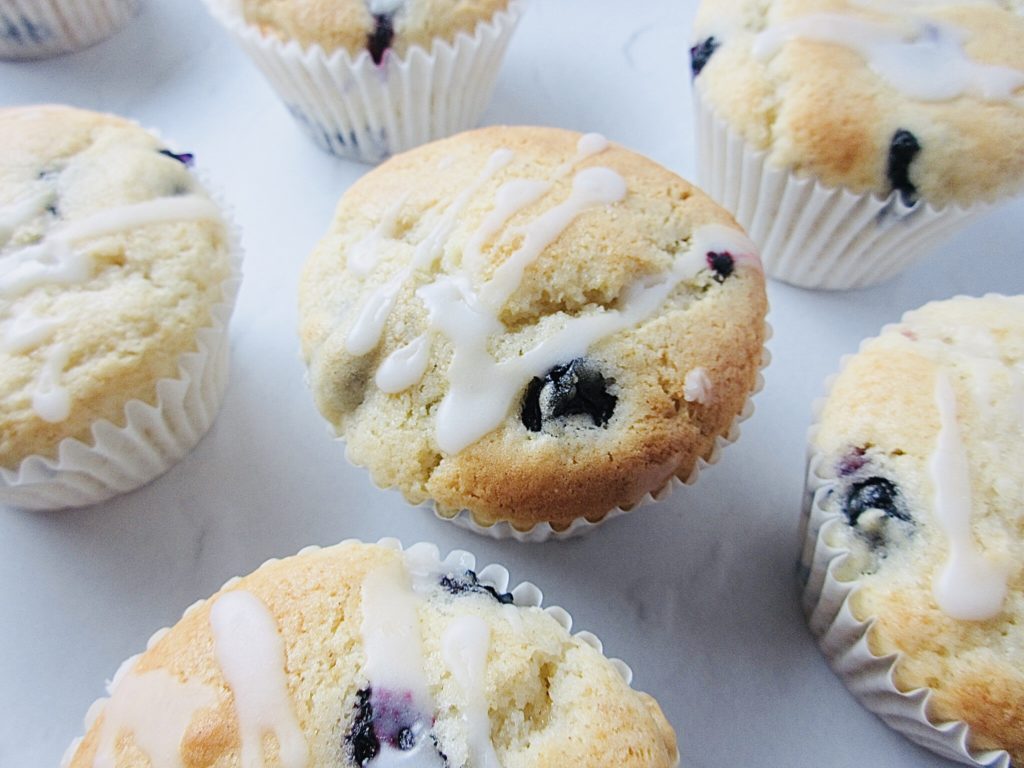 The muffins are made with a lemon batter which includes the blueberries. Once the muffins bake, they are finished off with a lemon flavoured icing drizzled on top which makes them even more delightful.