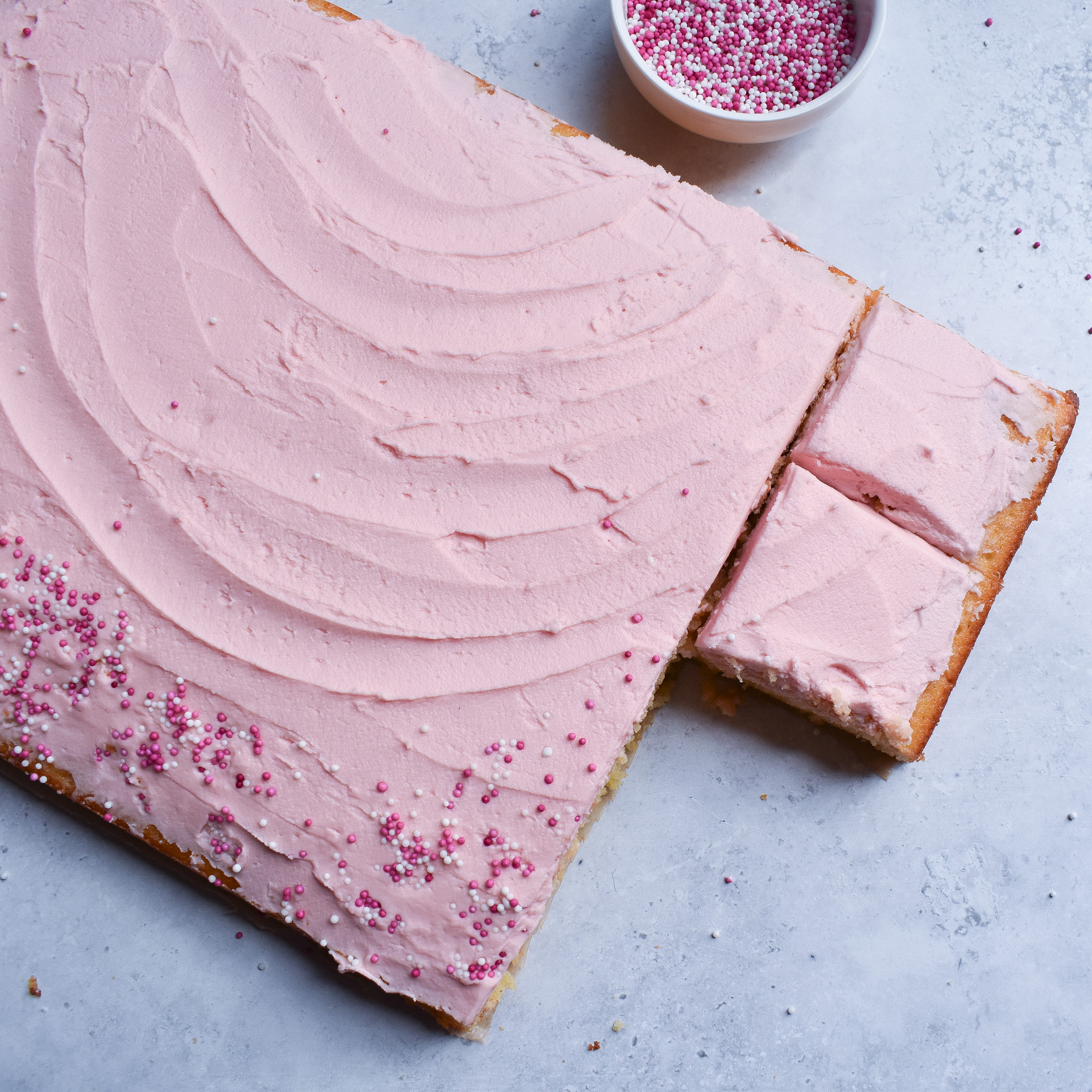 Pretty in Pink Vanilla Traybake Cake with Buttercream