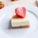 If you love cheesecake but don’t want the hassle of making a full-sized one then this recipe for these cheesecake bars that also require no water bath is the perfect solution. Using an 8 x 8-inch square tin, you’ll get perfectly portioned squares that are rich, creamy and great for sharing.
