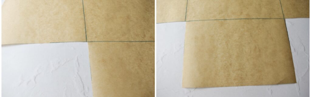 4. Using scissors, cut along all 8 lines and remove the piece of parchment from each corner.