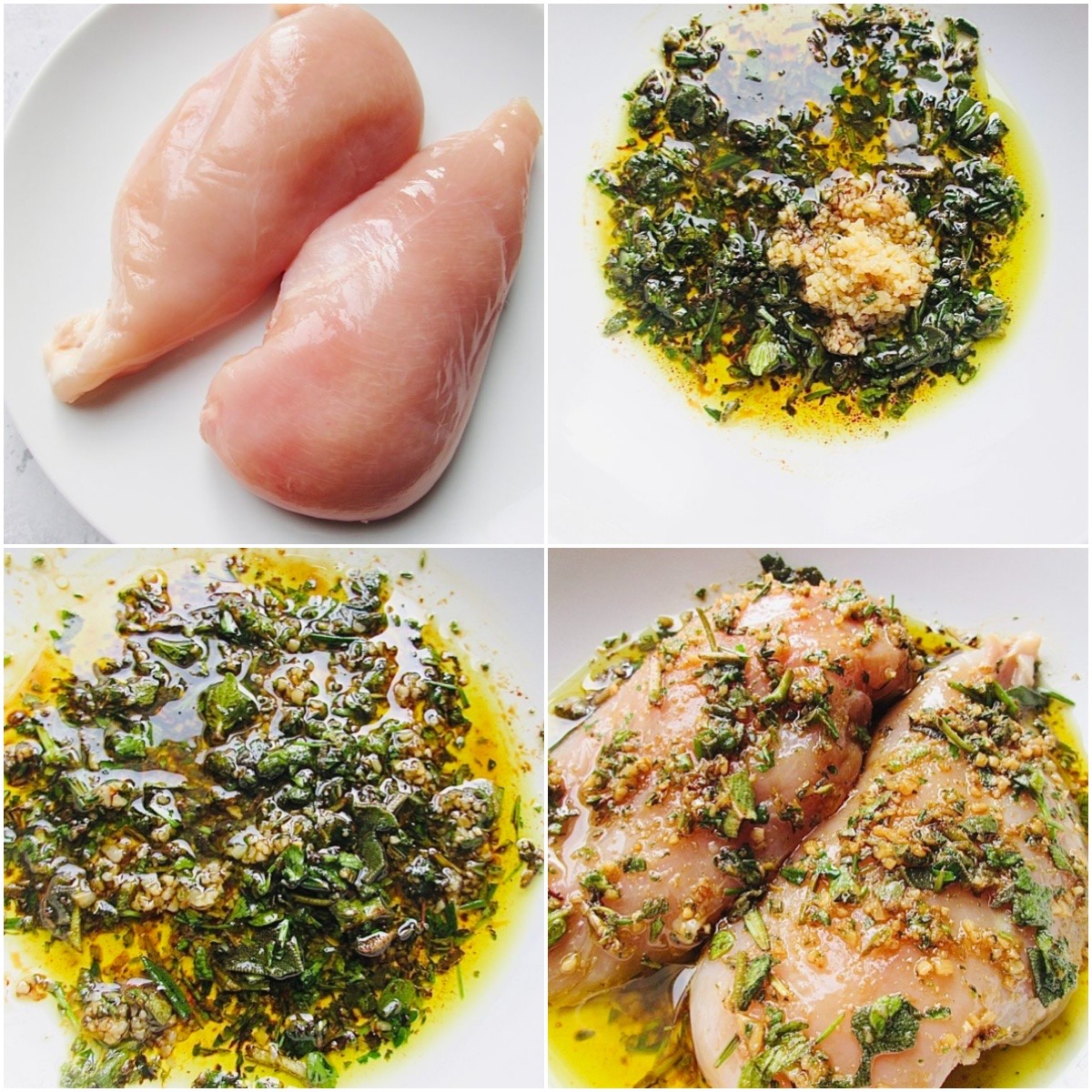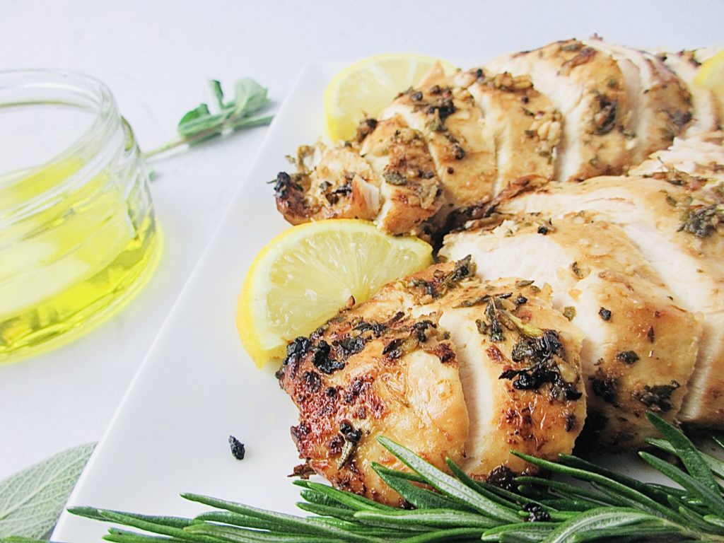 - Marinade - I use, extra virgin olive oil, lemon juice squeezed from one lemon, minced garlic, fresh oregano, fresh rosemary, fresh thyme, fresh sage and fresh parsley.