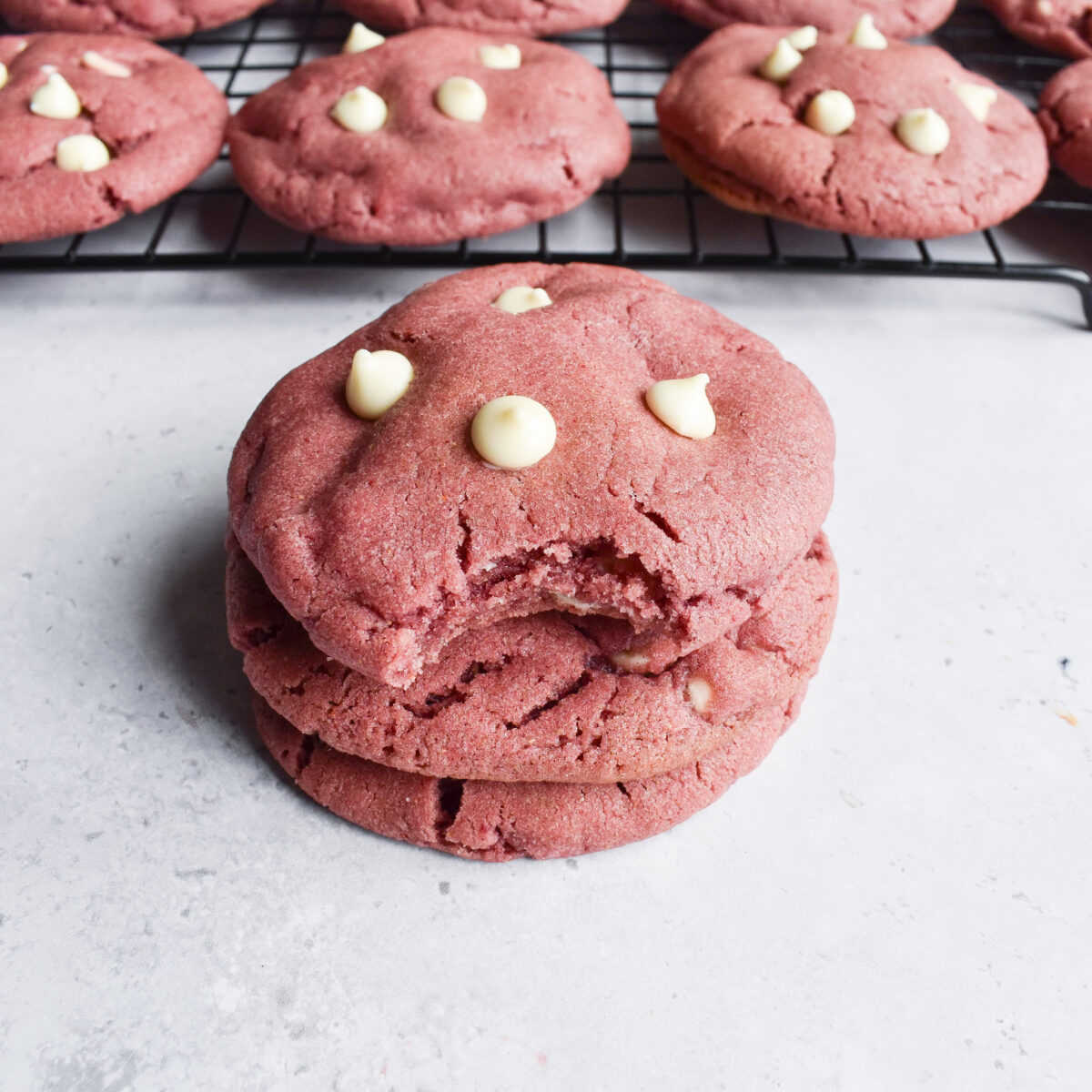 Using freeze-dried strawberry powder is great for convenience and it also helps to give these cookies their beautiful colour. Attempts using fresh strawberries made the cookies too cake like so freeze-dried is definitely the way to go for the perfect textured cookies.